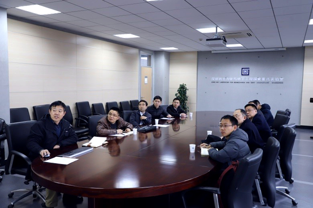 靖教授向专家的到来表示欢迎,并详细介绍了国家重点实验室规模、特色以及近年来取得的成绩,孙总裁介绍了此次来院交流的目的,表达了与学院和深部岩土力学与地下工程国家重点实验室合作进行科学研究的意向。马院长代表学院向来访专家介绍了学院的研究成果,与会人员就锚杆支护、绿色开采和顶板卸压爆破技术在西南地区煤矿开采中的应用进行了深入探讨。