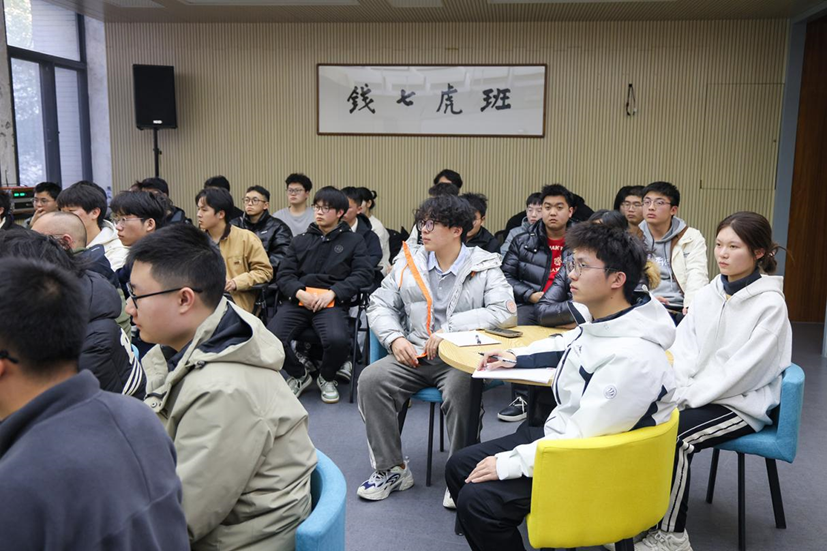 班会过程中,2023 级钱七虎班班长朱迅对荣誉班级的建设情况进行了全面介绍,钱七虎班的全体学生围绕“青年职业生涯发展”“土木工程专业科研方向选择”“人工智能影响下土木工程学科前沿探索”“土木工程亟需重点突破的问题”“大学生如何认清世界和中国发展大势”等问题踊跃发言。钱七虎院士认真倾听、不时插话,与大家亲切交流,并就同学们的困惑逐一做了细致解答。钱七虎院士指出,青年是民族复兴的希望,唯有德才兼备、身心健康,方能成为强国建设的栋梁之材。他强调,青年学子必须赓续老一辈科学家的家国情怀,将个人理想融入国家发展大局,以国家需求为己任,为实现中华民族伟大复兴的中国梦贡献青春力量。钱院士勉励全班同学要积极培养颠覆性思维,敢于突破传统框架,大胆设问、小心求证、勇于创新,不断探索未知领域,希望同学们要高度重视实践创新,在解决“卡脖子”难题中锤炼本领、提升能力。