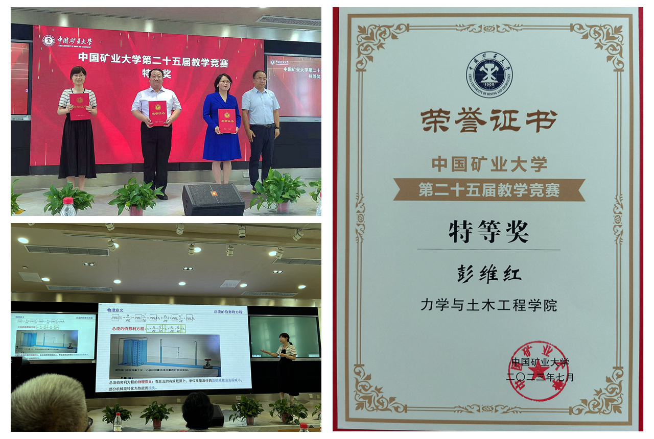 立足教学岗位,提高教研水平。七一当天,中国矿业大学第二十五届教学竞赛传出喜讯,我院彭维红副教授荣获特等奖(第一名)。本届教学比赛结合专家评委历时一学年的随堂听课、课程教学设计、课程教学创新成果报告等评审结果,遴选出29名参赛教师进入小组决赛阶段。课堂教学赛道比赛包括5分钟现场说课和20分钟现场讲课环节,参赛教师以饱满的热情、扎实的基本功、巧妙的课程设计和灵活的授课方法赢得了评委、同行及与会师生的高度认可。经过激烈角逐,我院力学系彭维红等6名教师晋级特等奖决出赛。在特等奖决出赛中,彭维红老师凭借扎实的学术功底和独特的教学风格,展示了自己过硬的教学素养,博得了专家评委的一致好评,获得了特等奖(第一名)。本次竞赛展现出了我院青年教师们在本科教学方面具备的扎实功底,这与学院高度重视青年教师队伍建设、提高青年教师教学水平、促进教学高质量发展所采取的一系列举措密不可分,真正达到了以赛促学,以赛促教、以赛促能的目的。